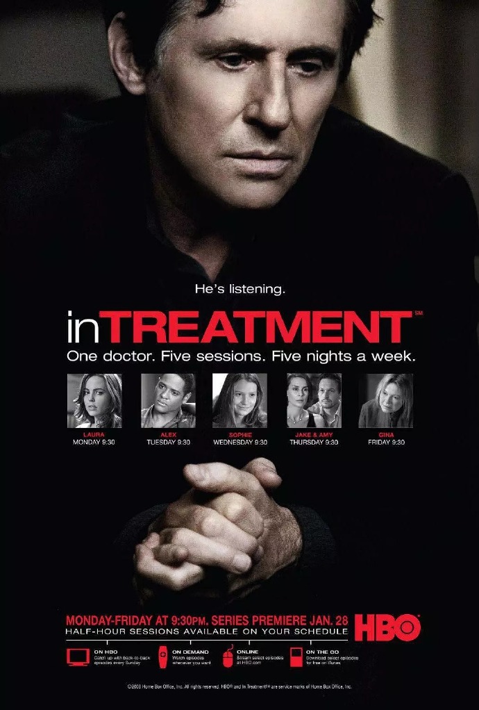每周的第一天到第四天,中年心理医生保罗(加布里埃尔-伯恩 饰)都会在这样的心理咨询室里接待不同却可称为“固定”的四位来访者,每周轮流四次问诊,每次30分钟;周五,保罗会定期约见自己的督导师。